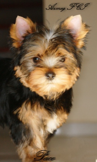 Paco jest średniej wielkości z doskonałym bardzo gęstym włosem w gatunku i kolorze,krótka kufa,zwarty , wesoły.